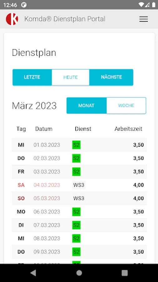 You provide your employees with current Komda® duty roster data via the Komda® duty roster web portal. Employees can easily find out about their shifts, hourly balances and vacations via smartphone, tablet or PC.