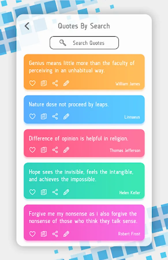 Best Quotes application is a compilation of over 20,000 famous quotes from some of the greatest people. These quotes have been quoted innumerable times, and have become a source of inspiration, motivation, philosophy, and wisdom for humanity across the ages.