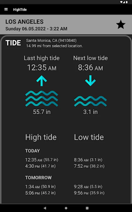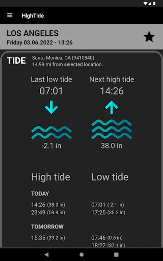 - Time table for high and low tides for today and tomorrow