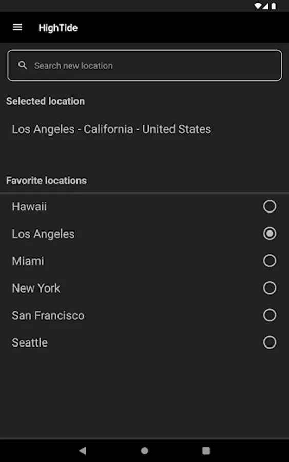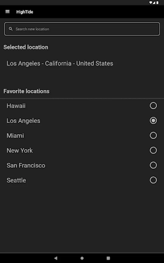- Press back, or swipe left, to search for a new location.
