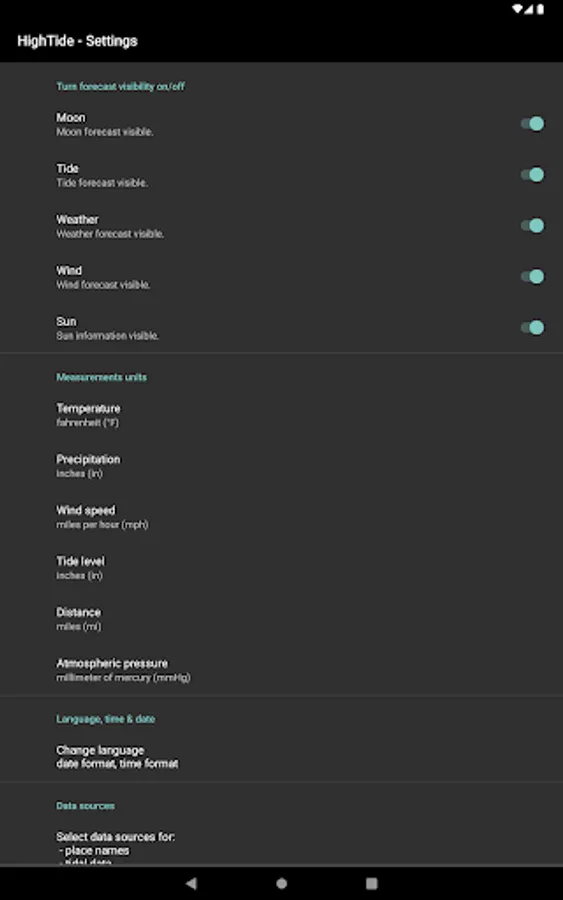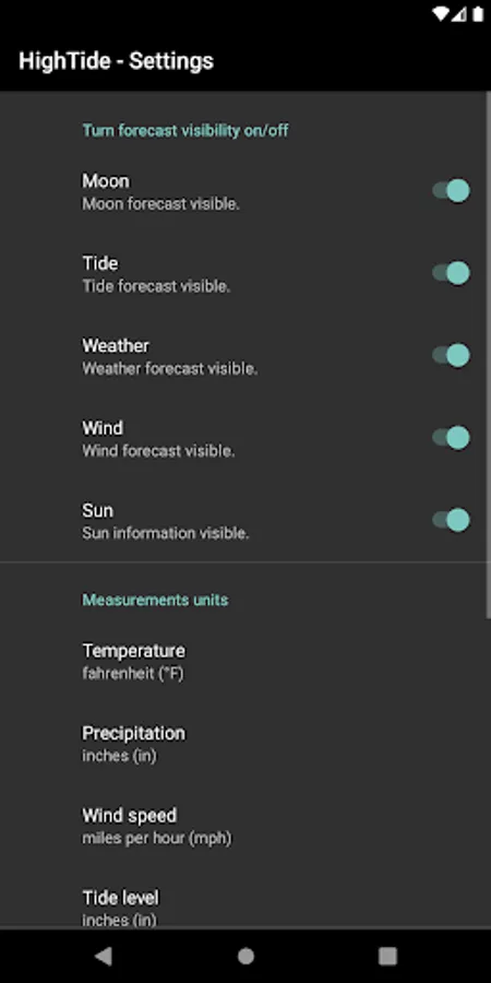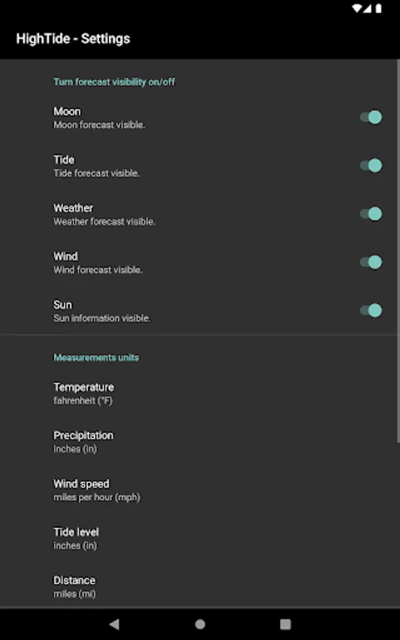 - Set visibility for each forecast to adjust your app layout. (settings)