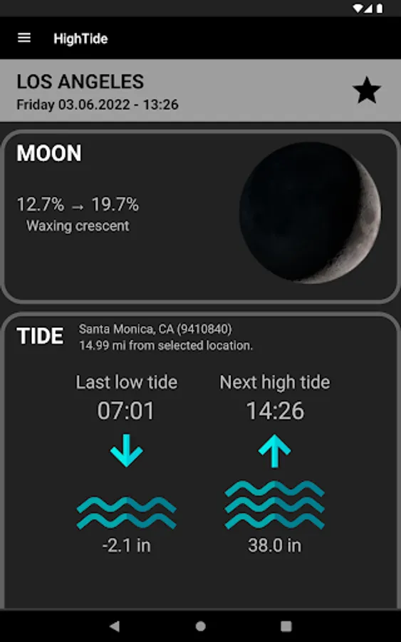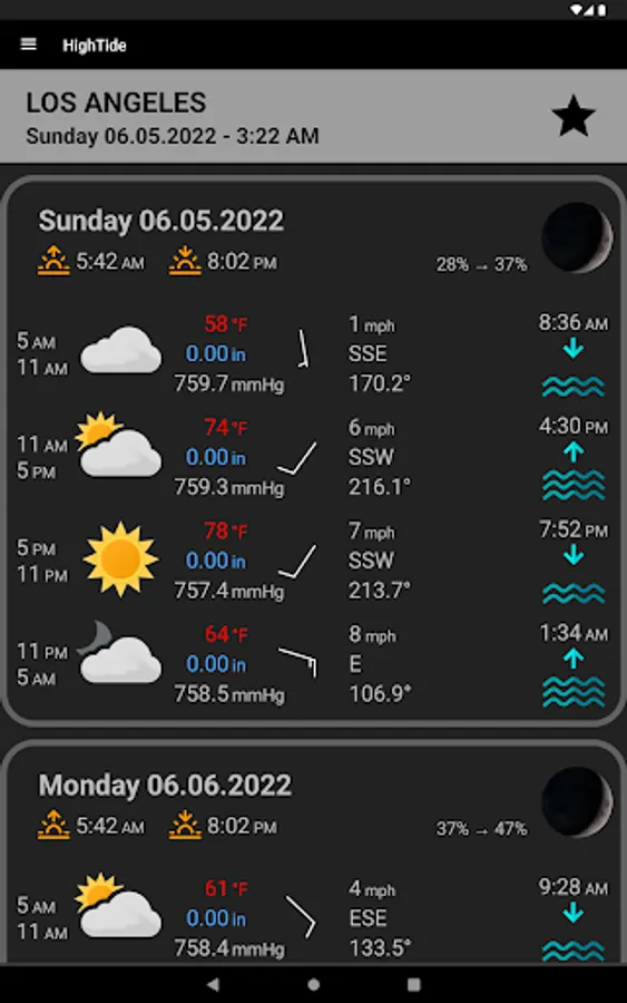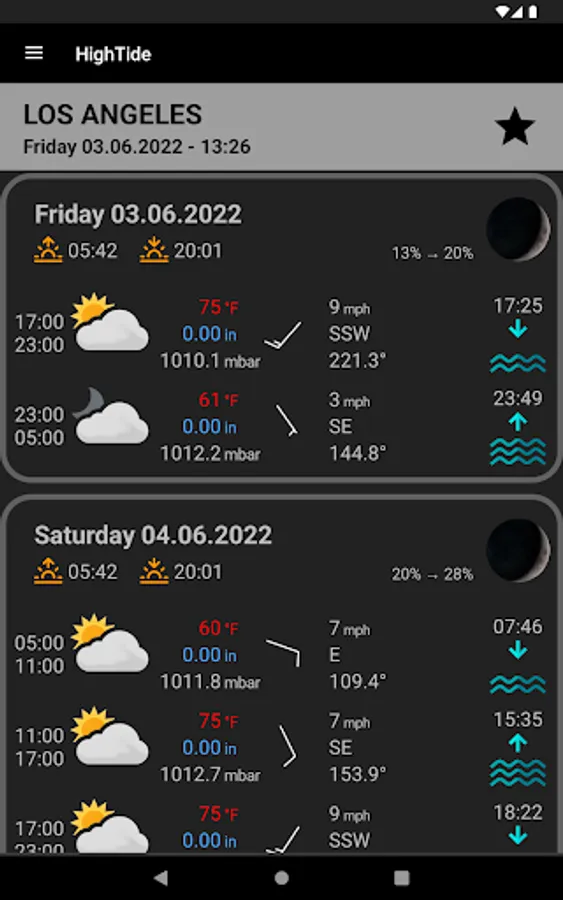 Search for your location anywhere in the world and get info about the water levels for the tide station nearest you. In addition, you will also get tides for the next seven days and weather and wind forecast for the next ten days.