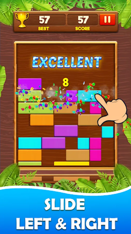 - When start Wood Blast, you have to slide to move the block, when you filling a line, you will be eliminated and scored. And continuous elimination will get extra score.