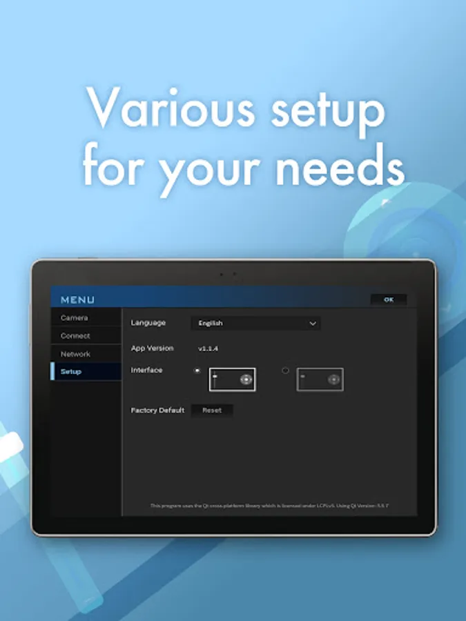 Easy camera control over Wi-Fi, with the smartphone and tablet interface, you can control your camera anytime and anywhere for a nice camera control design.