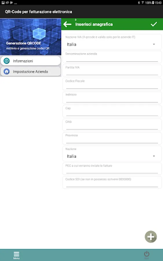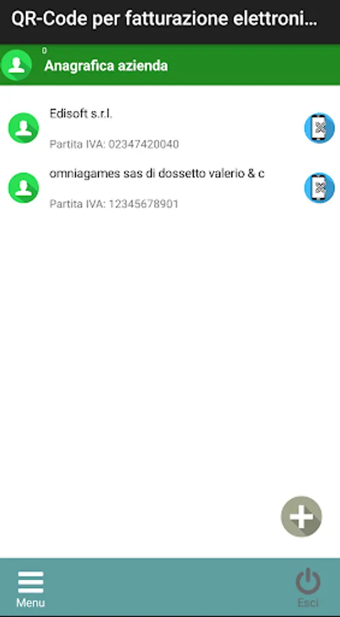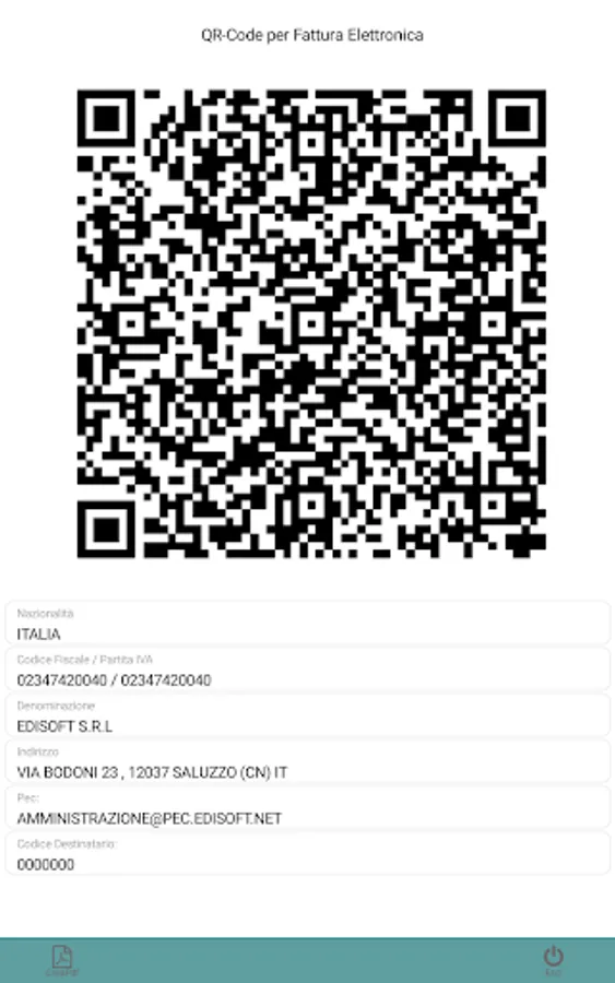 This app allows you to keep your company data on the phone and provide them in case of need to the manager who will issue the electronic invoice. In this way it is not necessary to keep the sheet printed by the revenue agency or to communicate the data manually, thus avoiding transcription errors.