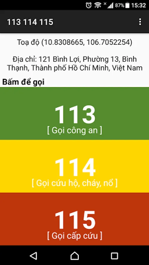 The application helps you contact support numbers in Vietnam with just one button without having to remember and enter each number: