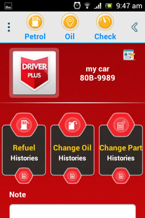 Histories change oil, Refuel, Parts, localtion it change, ...