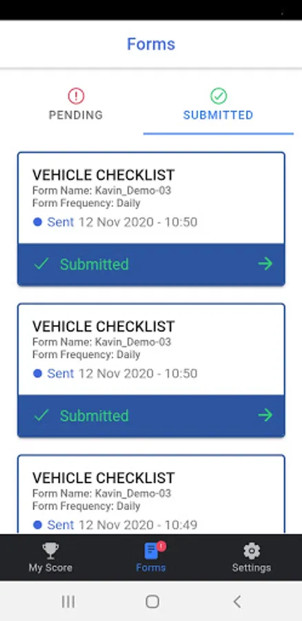 The app works together with the Crystal Ball's SmartCams which enables the driver to view their score, login to the SmartCams and also complete vehicle check forms.