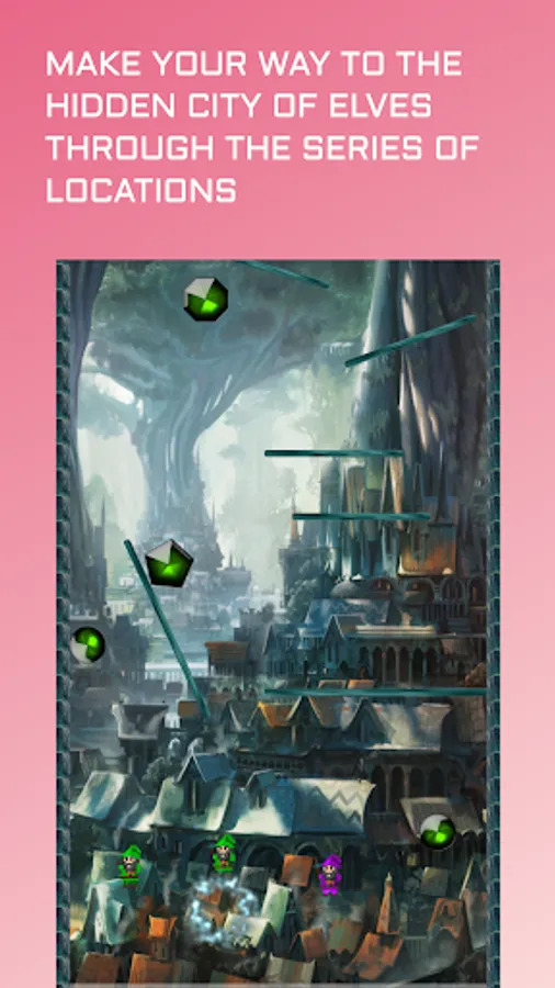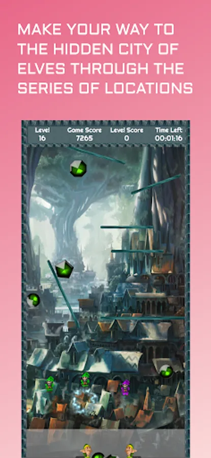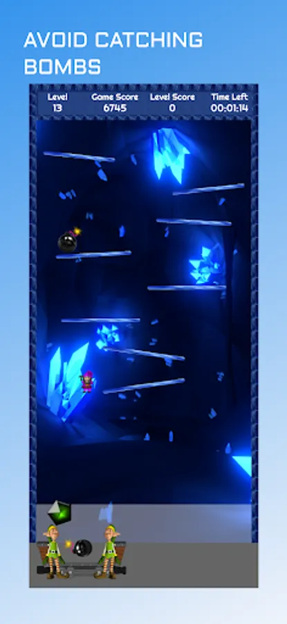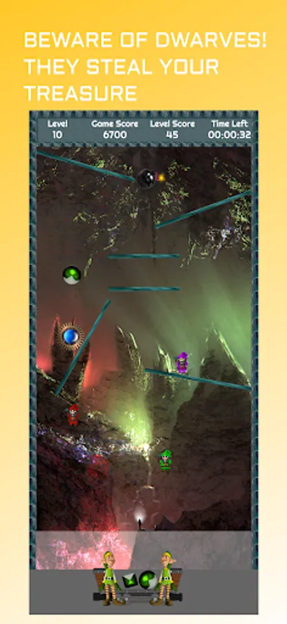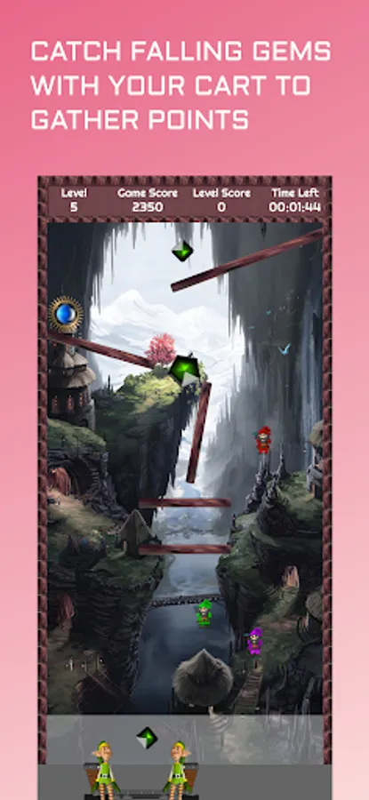 Catch and collect falling gems to go through series of underground locations on your way to the Hidden City of Elves. Evil Dwarves will try to stop you and steal your treasure.