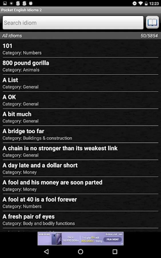 - More than 5000 idioms & phrasal verbs.