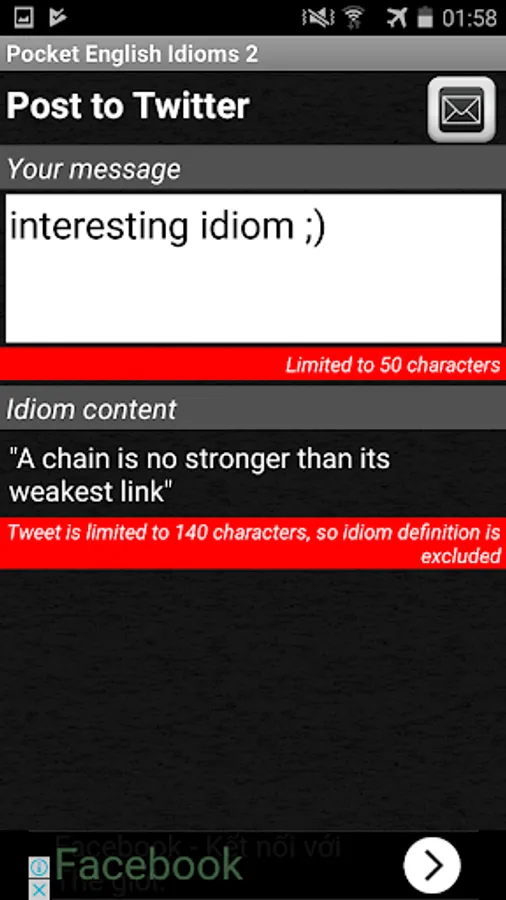 - Share idioms on Twitter & Facebook.