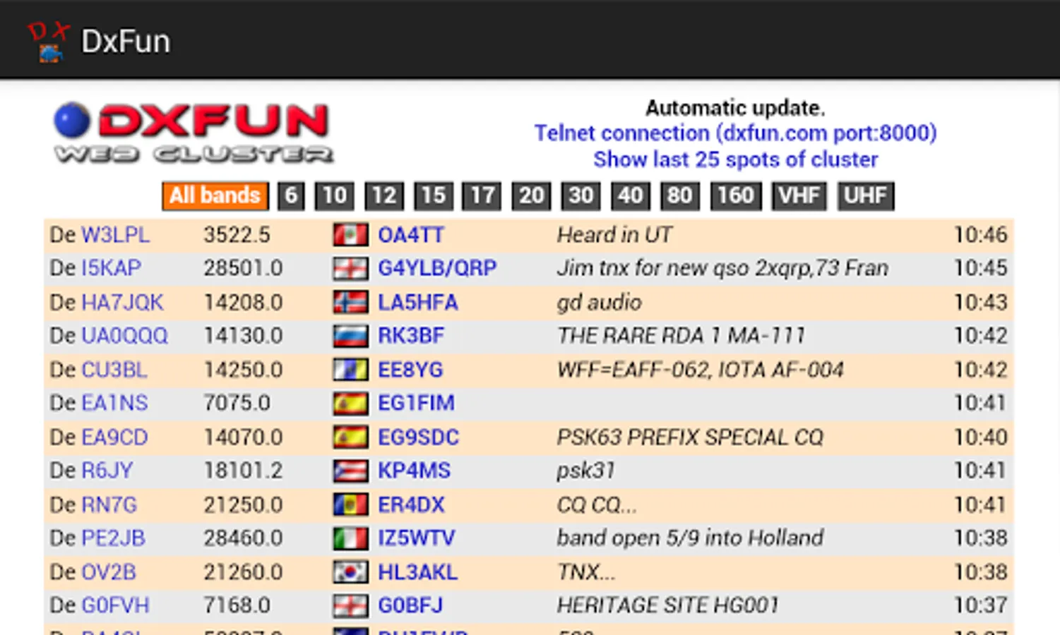 Get live DX spots on your Android device