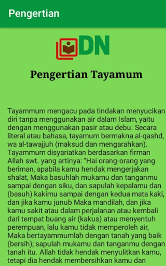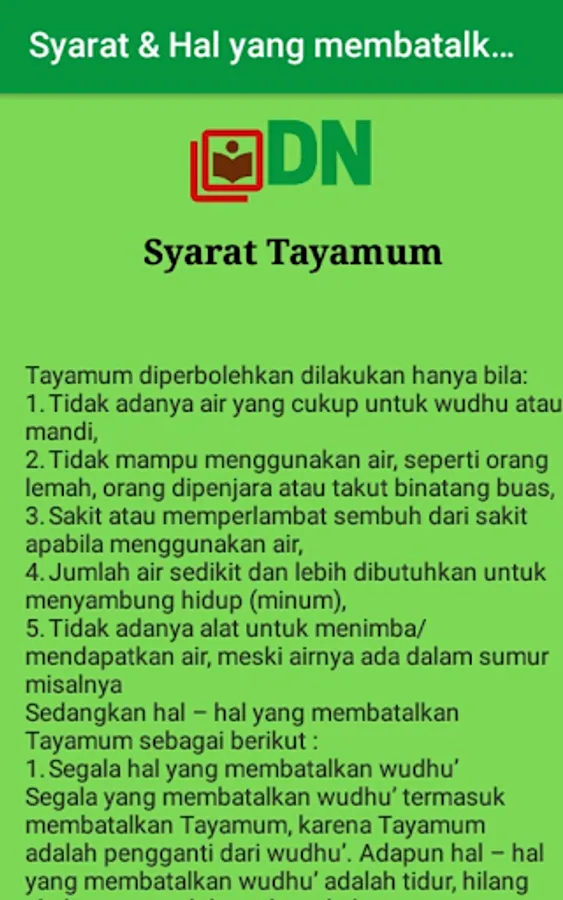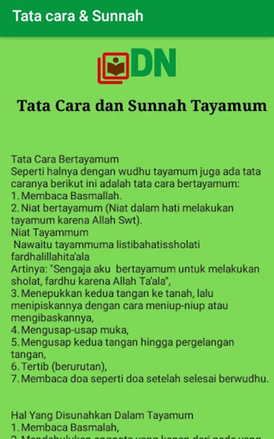 Tayamum Learning Application is an application that learns about tayamum, tayamum terms, tayamum sunnah, tayamum procedures, and things that cancel tayamum along with interesting tayamum animation videos.