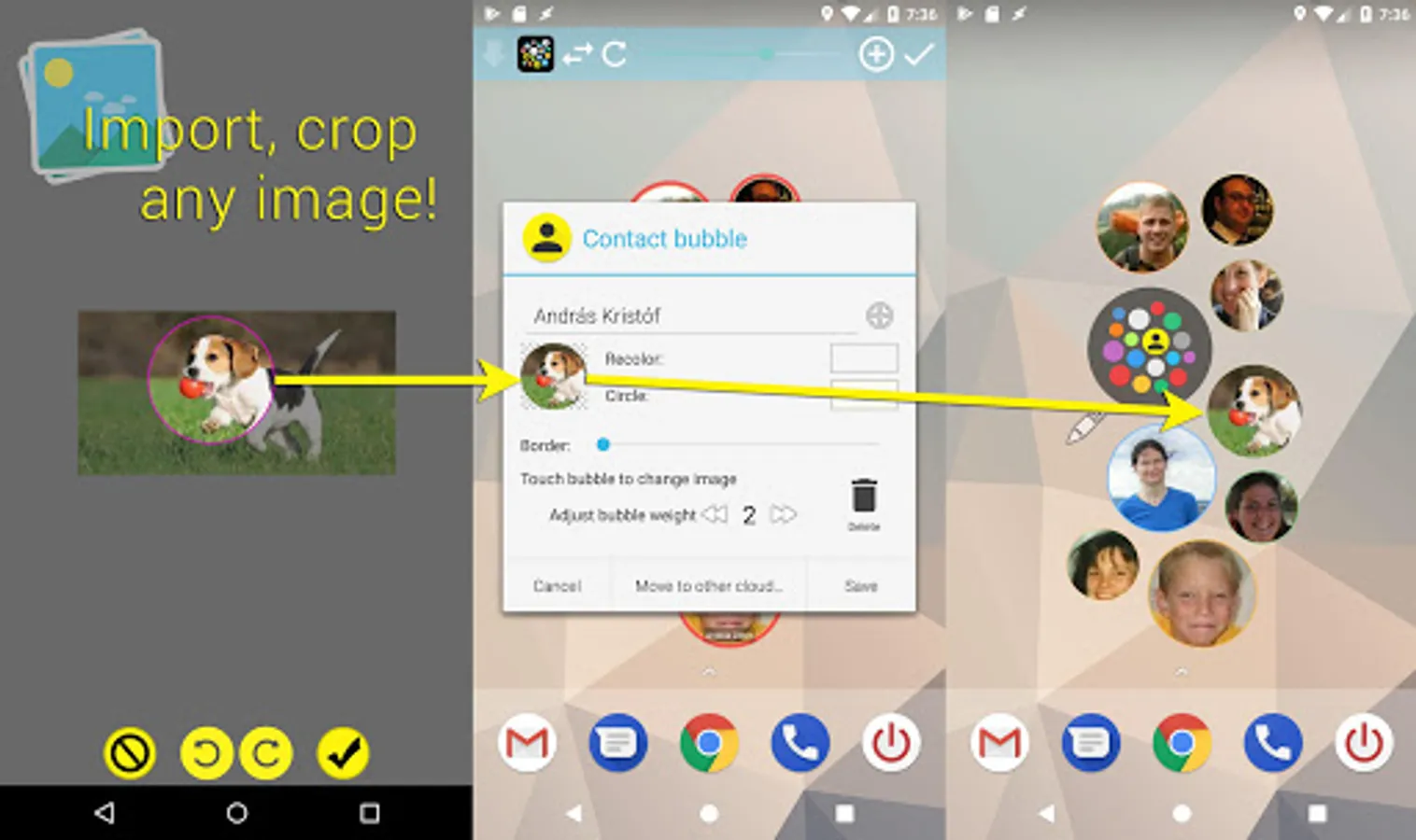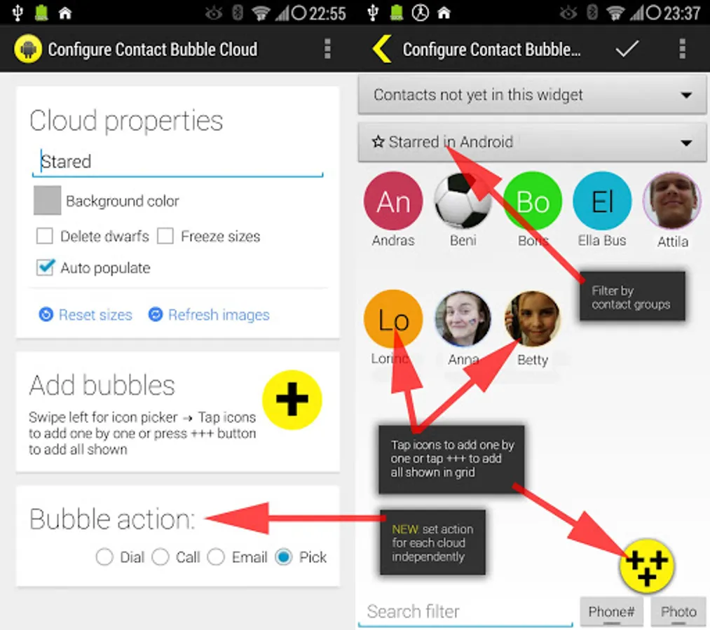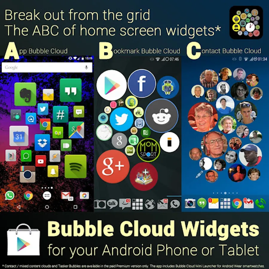 ► App Bubble Clouds: add icons one by one, or in bulk, or turn on auto-population by Play Store categories.