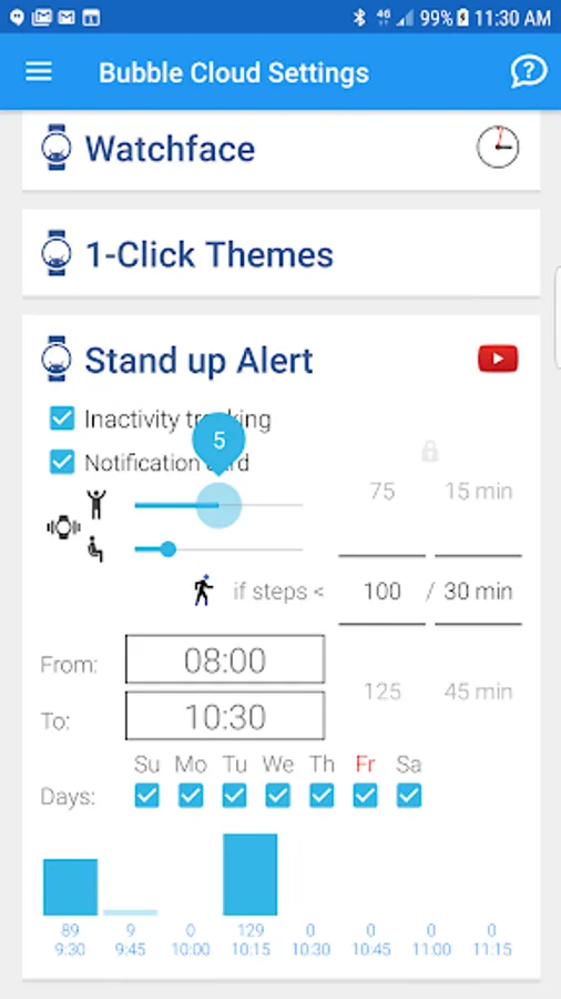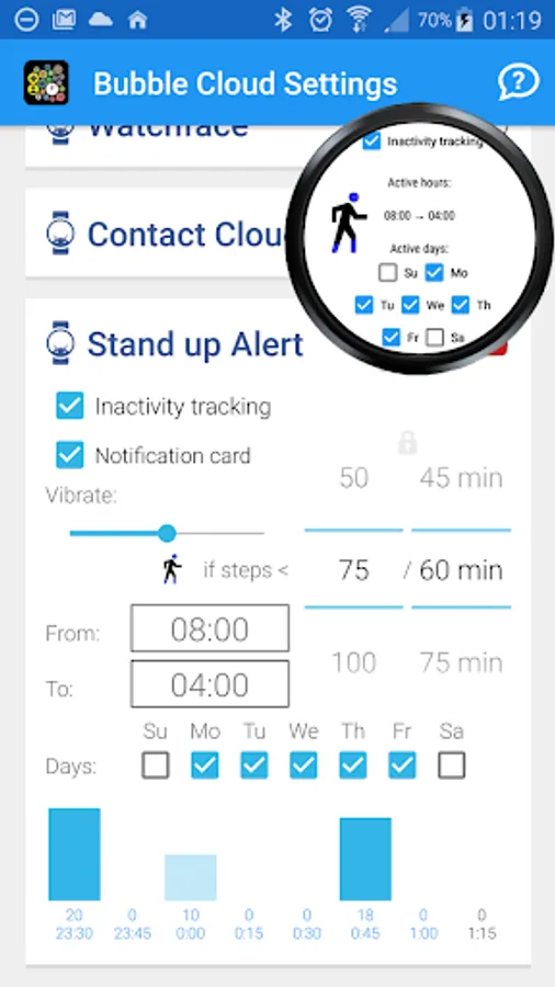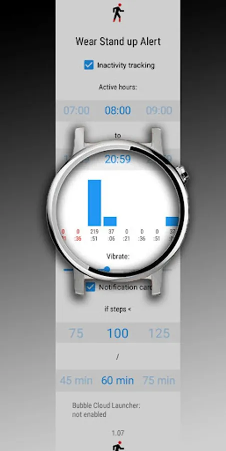 In day to day this is a fully automatic app. You set the active hours, reminder frequency and step limit for your particular watch, then app will politely do its thing. No more fiddling necessary.