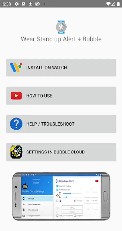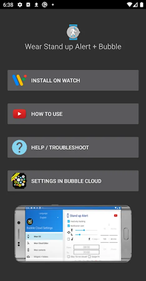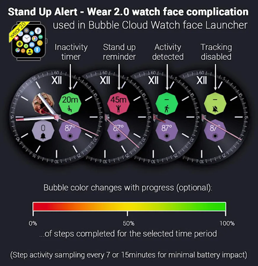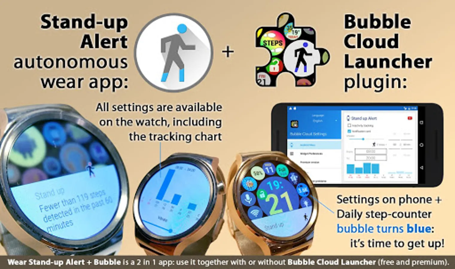 Note: this is a stand-alone app - works without Bubble Cloud Watch Face / Tile Launcher, but it provides extended features if both apps are installed → https://bubble.dynalogix.eu/wear-stand-up-alert