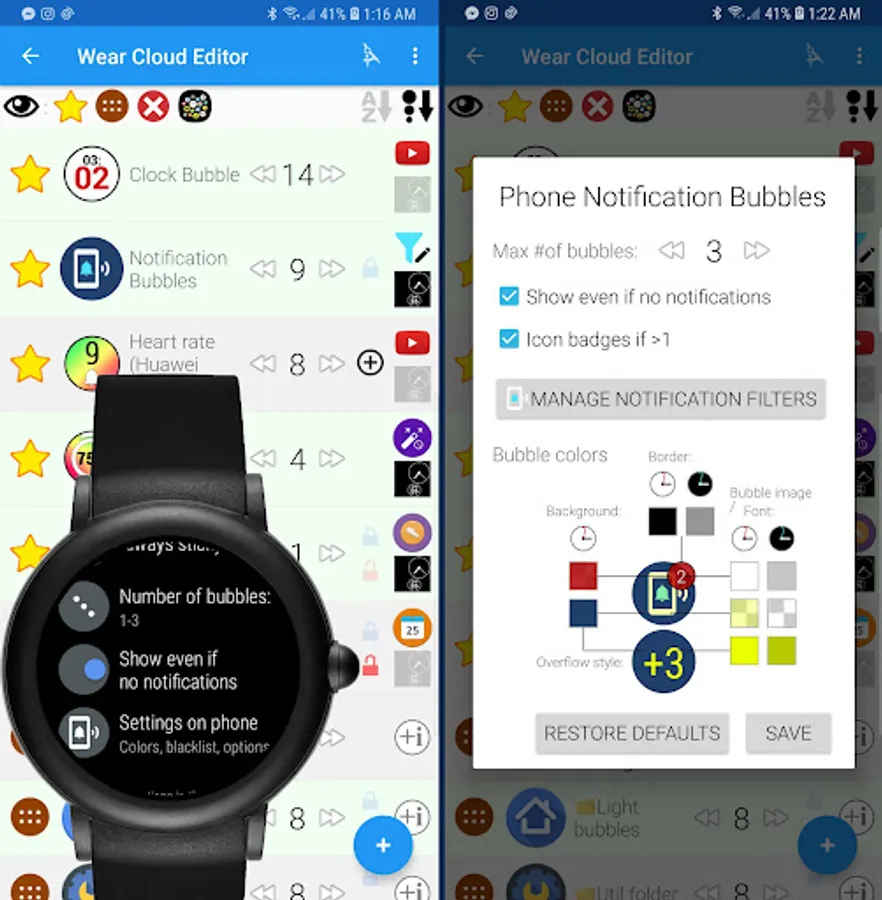 ► See "Notification bubbles" section or tap on "Status bubbles" in the Wear Cloud Editor