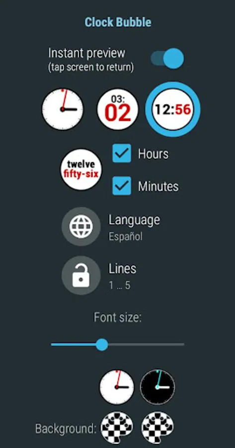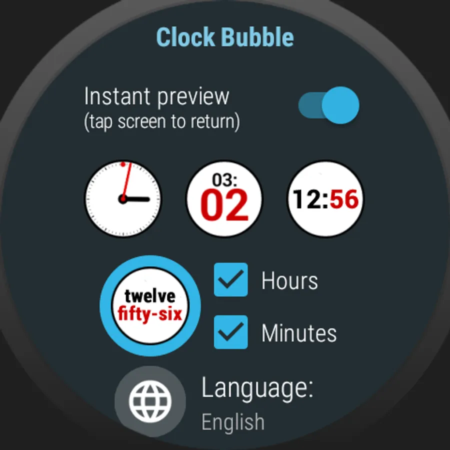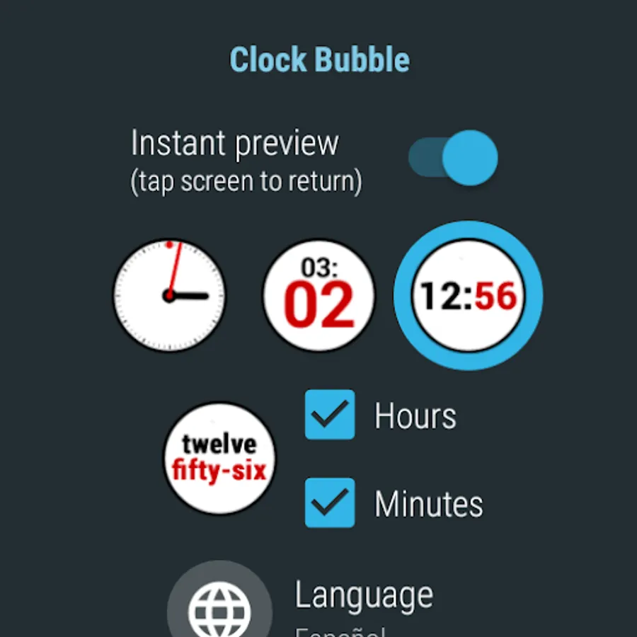 ► 7 digital clock bubble designs show time using text or digits (or mix)
