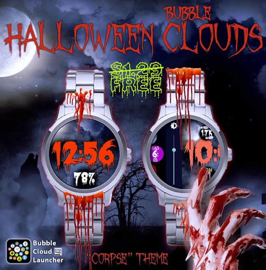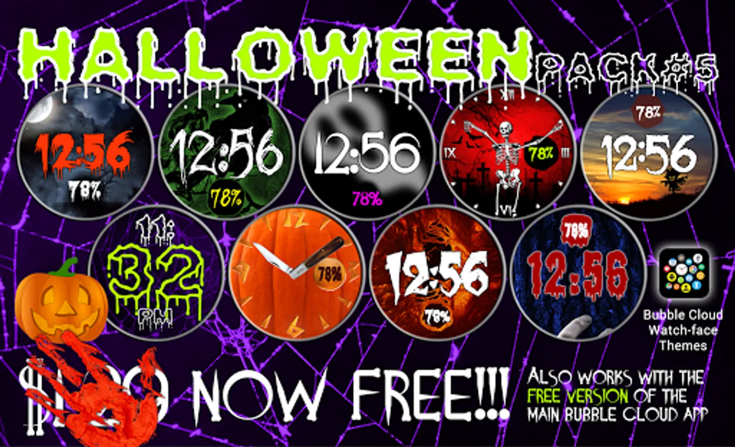 ► 2 analog clock bubble designs (Pumpkin Carver, Skinny Skeleton)