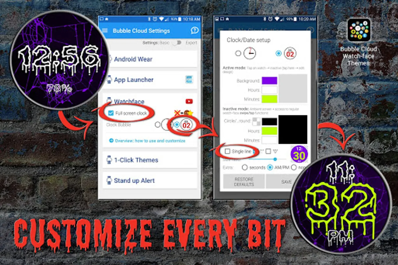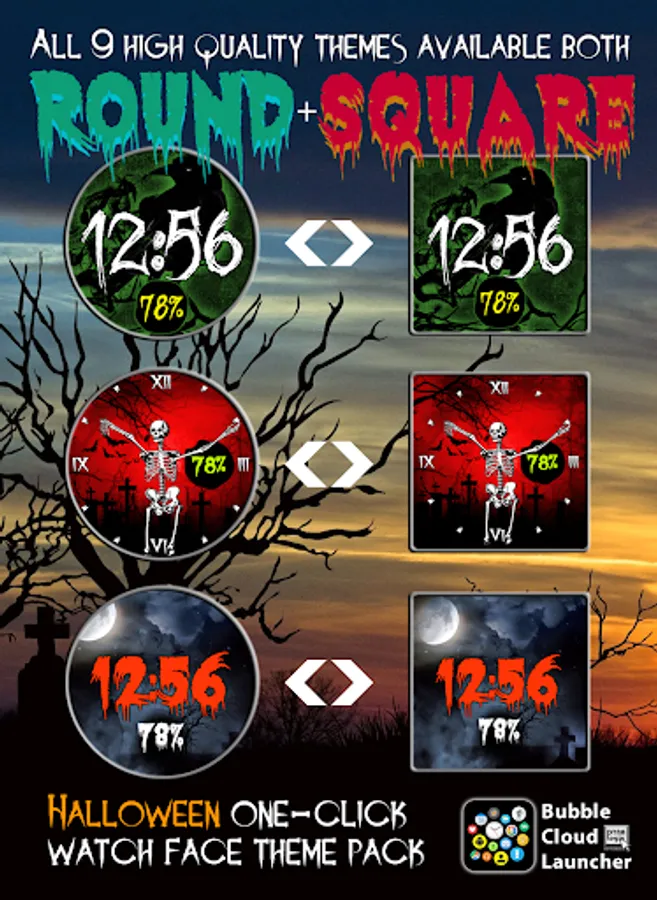 ► NEW: 9 matching themed bubbles for creating consistent looking watch faces