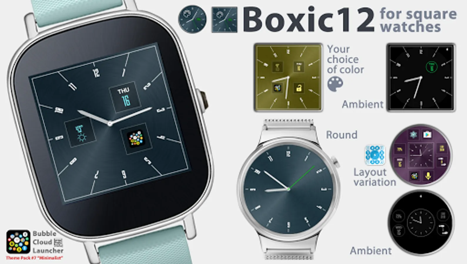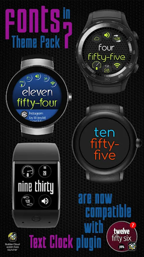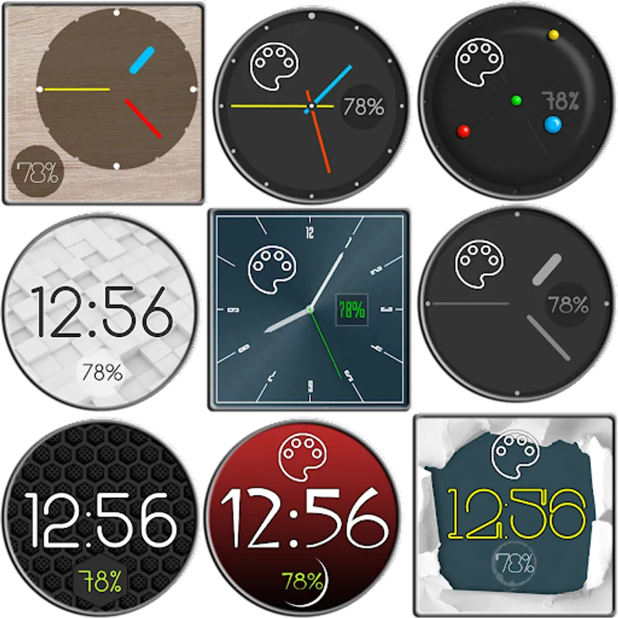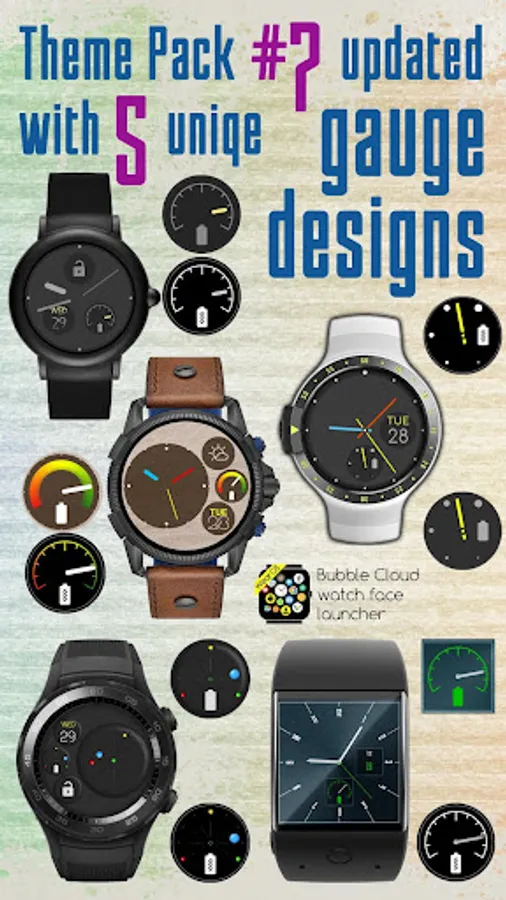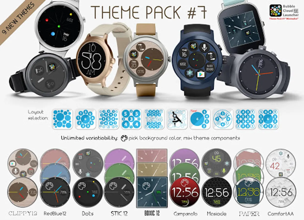 ► 9 matching themed bubbles for creating consistent looking watch faces