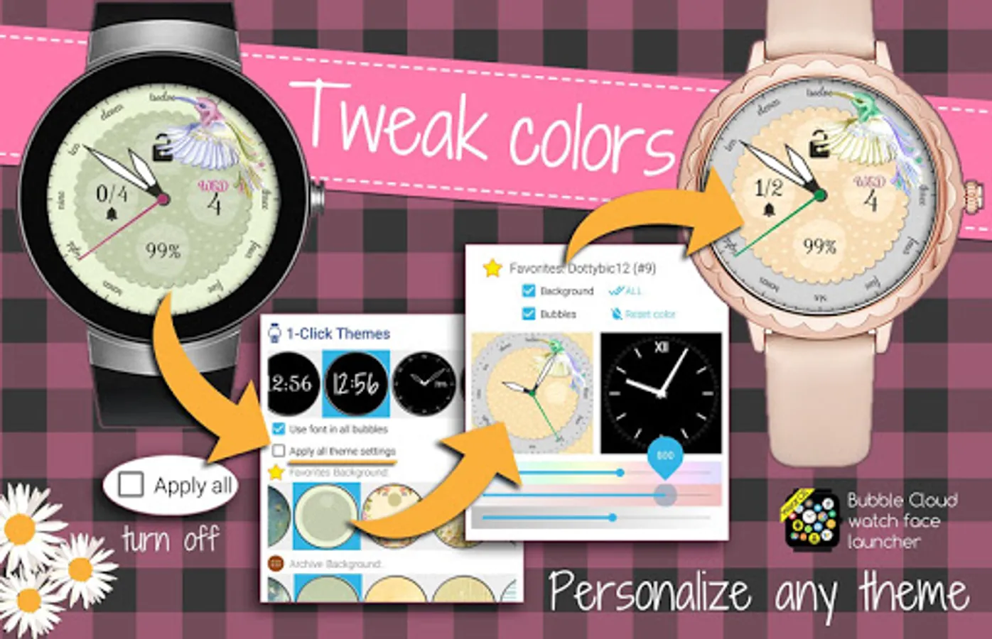 ► 5 matching themed bubbles for creating consistent looking watch faces