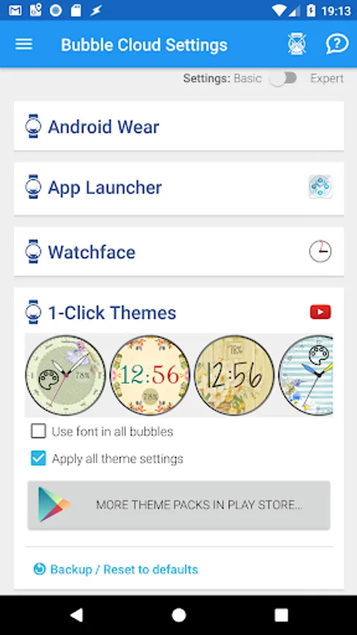 This theme pack works with Bubble Cloud Launcher for Wear OS (version 8.91 or higher). Please update main app to most recent version: https://play.google.com/store/apps/details?id=dyna.logix.bookmarkbubbles
