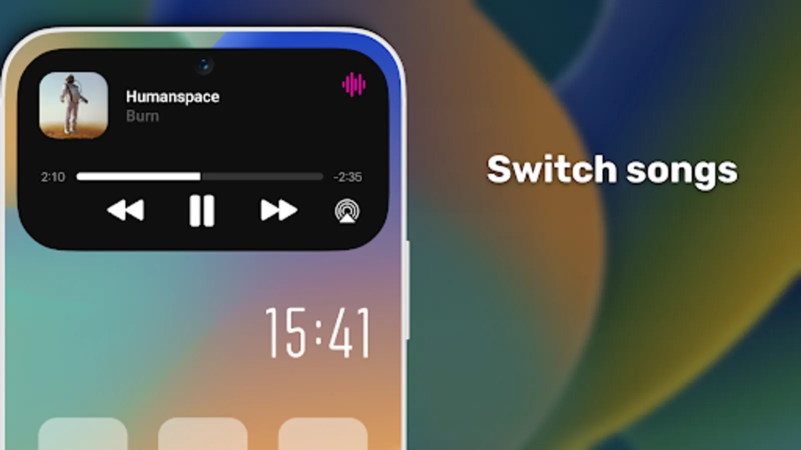- Any music players. When playing music in Floating dark island (Dynamic spot), a beautiful animation will be shown like on iPhone 14 or the time until the end of the song. Switching songs through the pill notch is much more convenient.