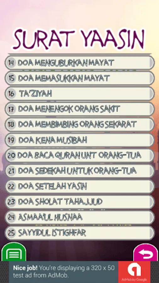 The Yasin Dan Tahlil application contains letters, prayers, and readings that are usually read on a daily basis or at an event: