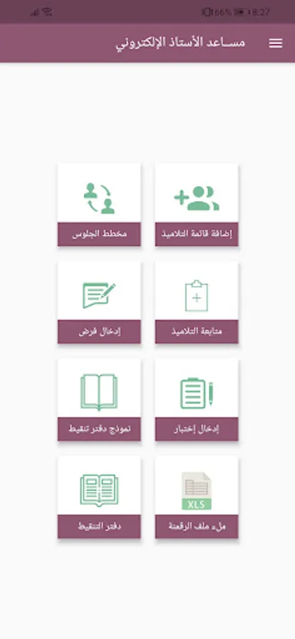 The electronic teacher assistant is an application to carry out some of the tasks of teachers such as controlling the seating plan within the class, following up on students according to the established standards, calculating the continuous calendar for students in a quick and simple way, calculating students’ grades and the ability to print a scorebook filled with students’ points, averages and notes or Print a scorebook form that includes the names of the students for the professor, fill out everything related to the digitization file xlsx.