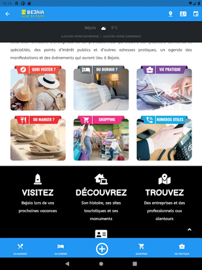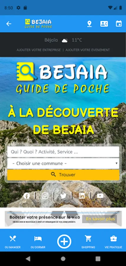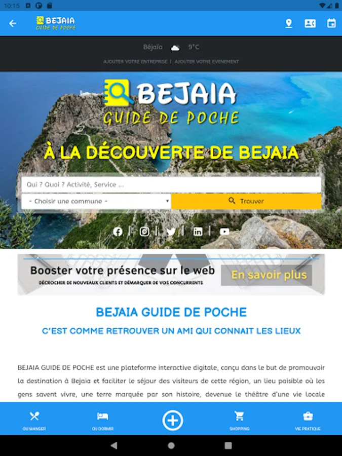 BEJAIA GUIDE DE POCHE is a digital interactive platform, designed with the aim of promoting the destination in Bejaia and facilitating the stay of visitors to this region, a peaceful place where people know how to live, a land marked by its history, which has become the theater of 'lively local life.