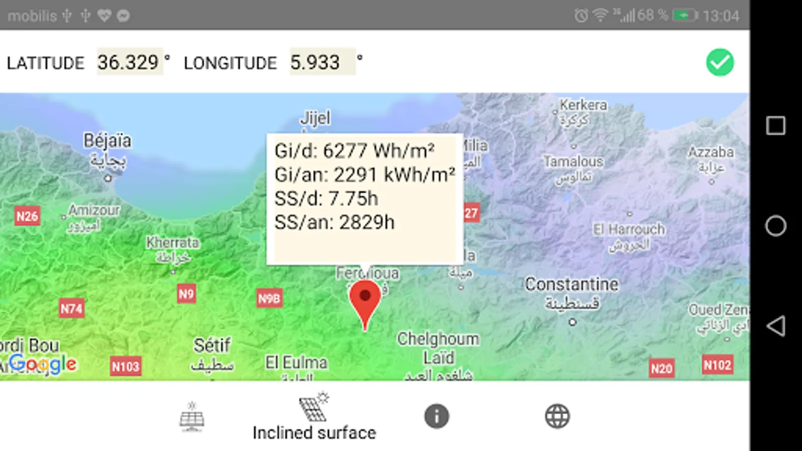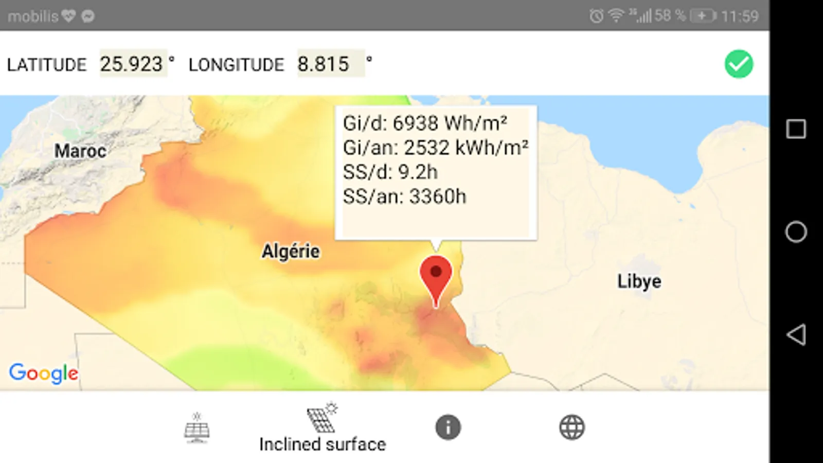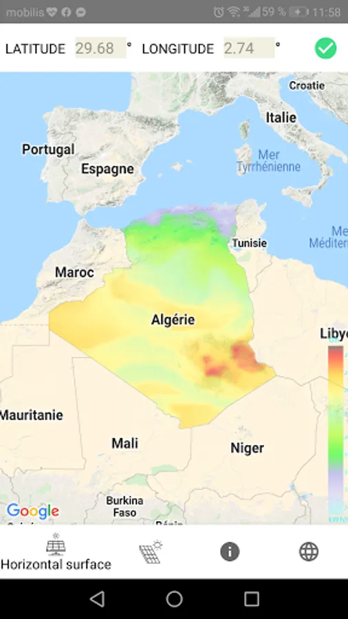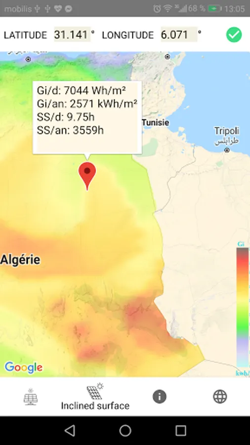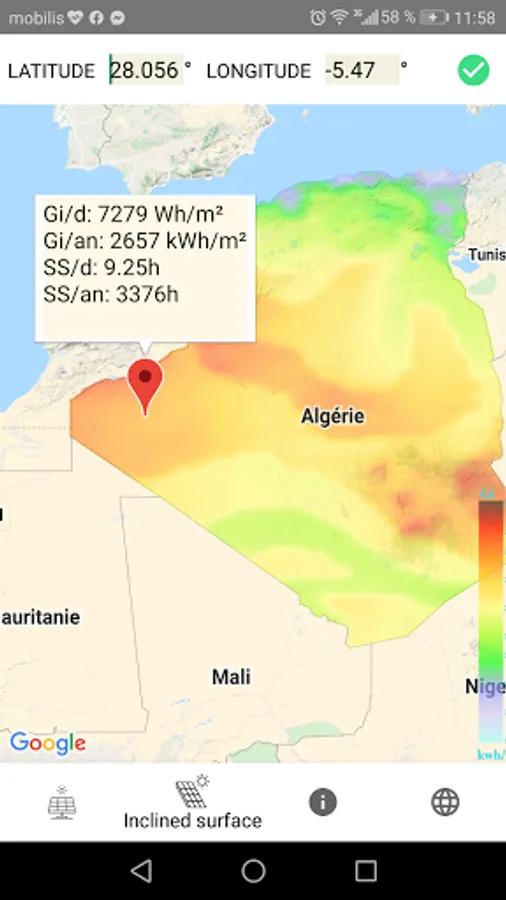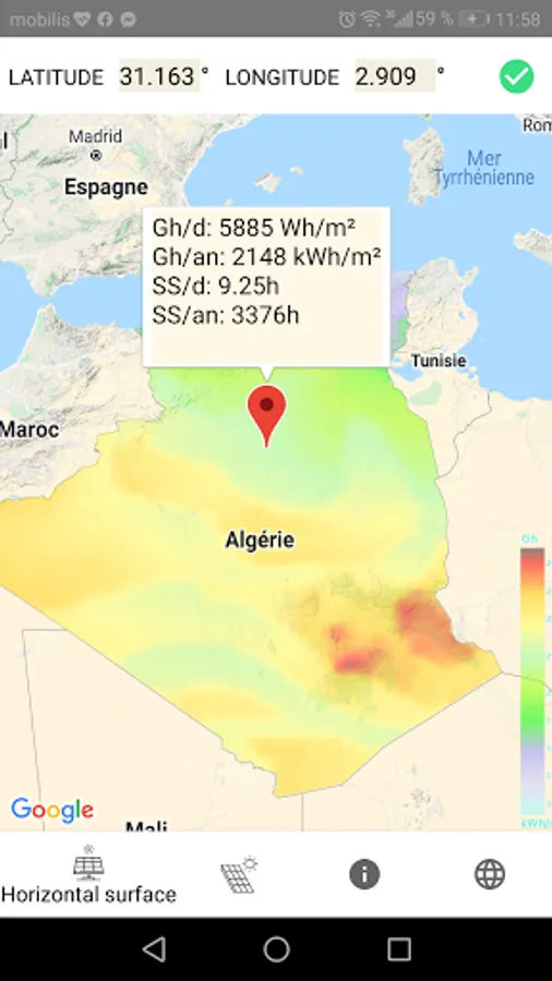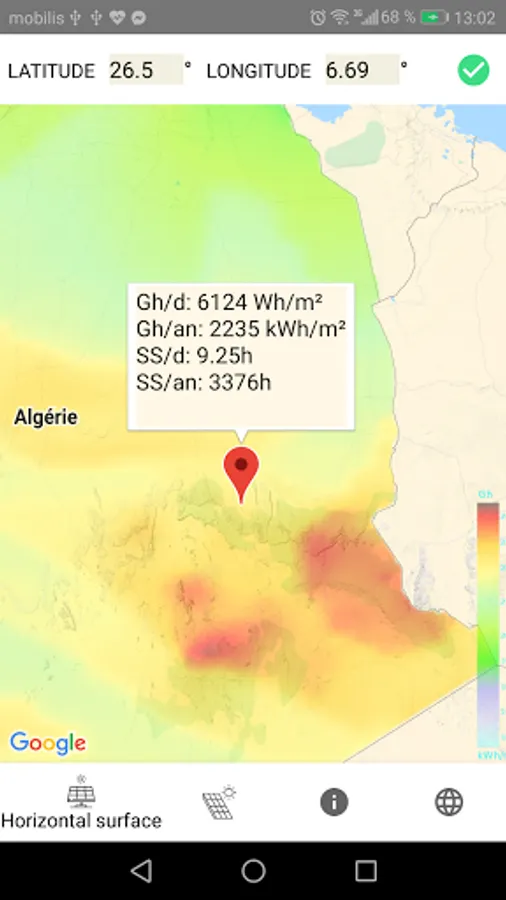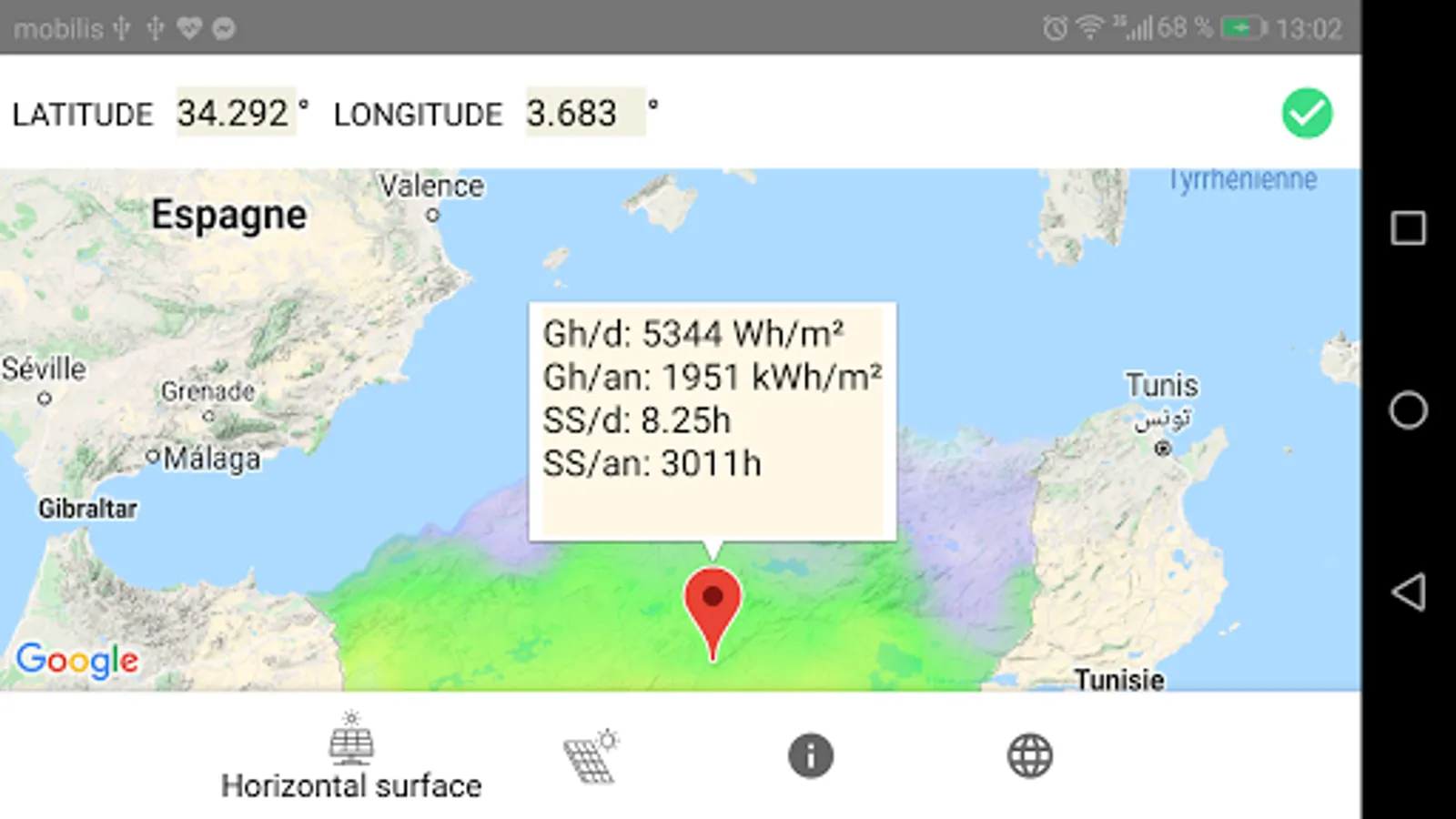The data used (duration of sunshine) are data measured over 10 years, by the National Office of Meteorology (ONM) from 2002 to 2012.