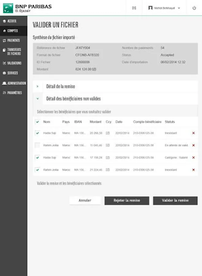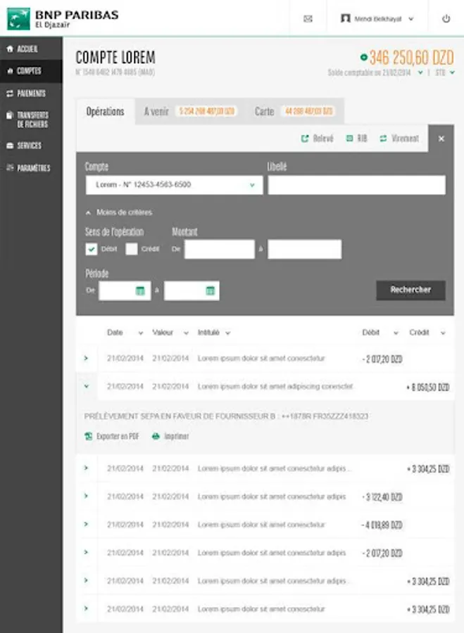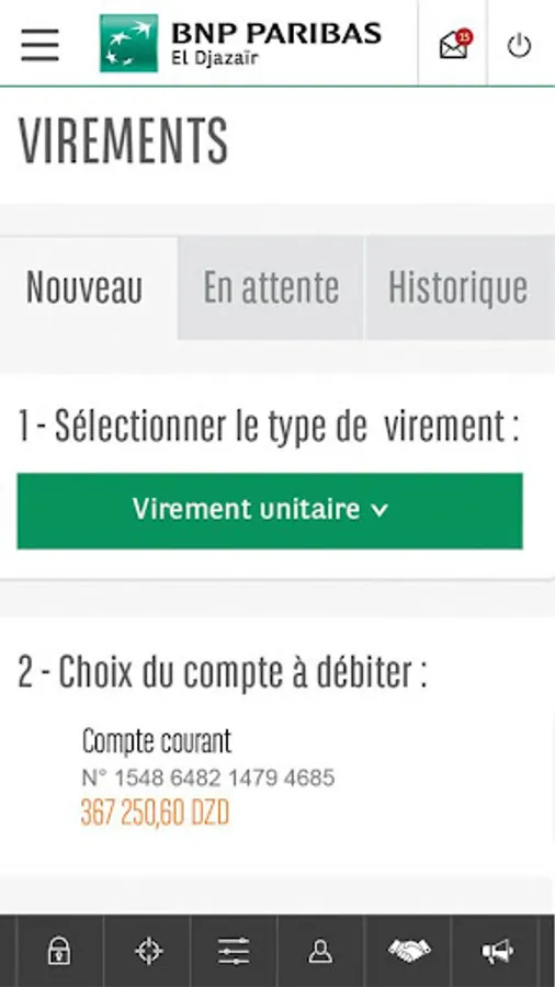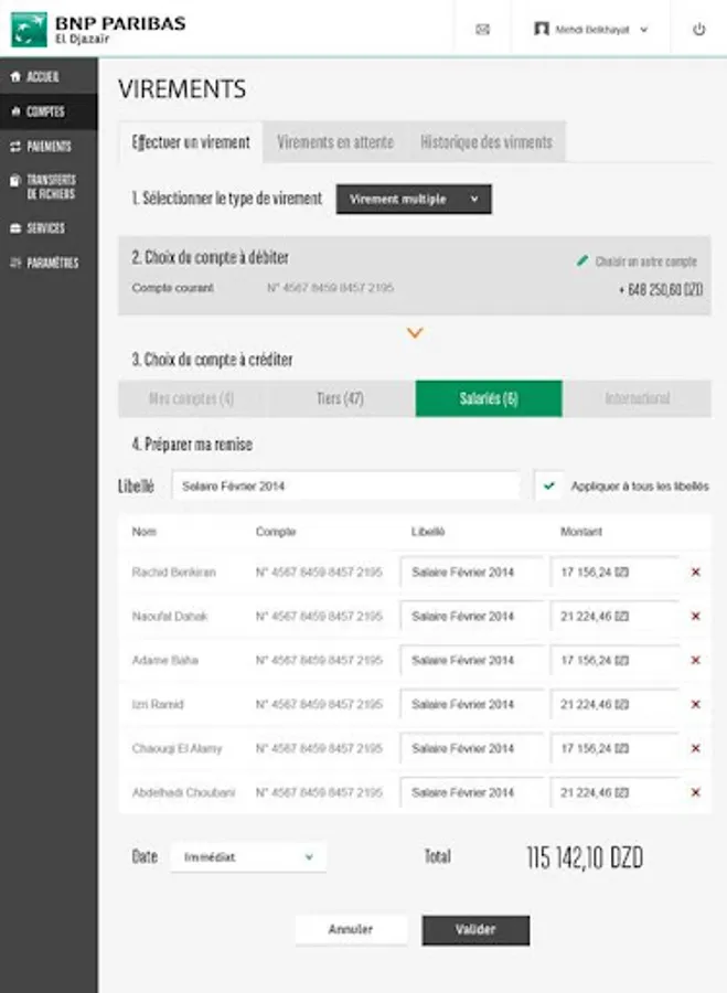 * Make your simply transfers to other accounts BNP Paribas El Djazair and to beneficiary accounts