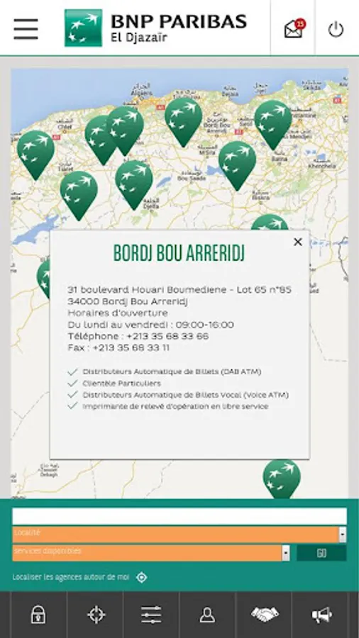 * Select the agency, the business center or the BNP Paribas ATM depending on your position in Algeria, choose the opening hours and / or services available and the geolocation tool embedded in the application offers the the shortest route to get there easily with GPS guidance from your smartphone.