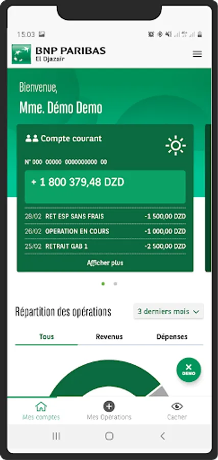 - Make transfers to your accounts, BNP Paribas El Djazaïr accounts or fellow accounts