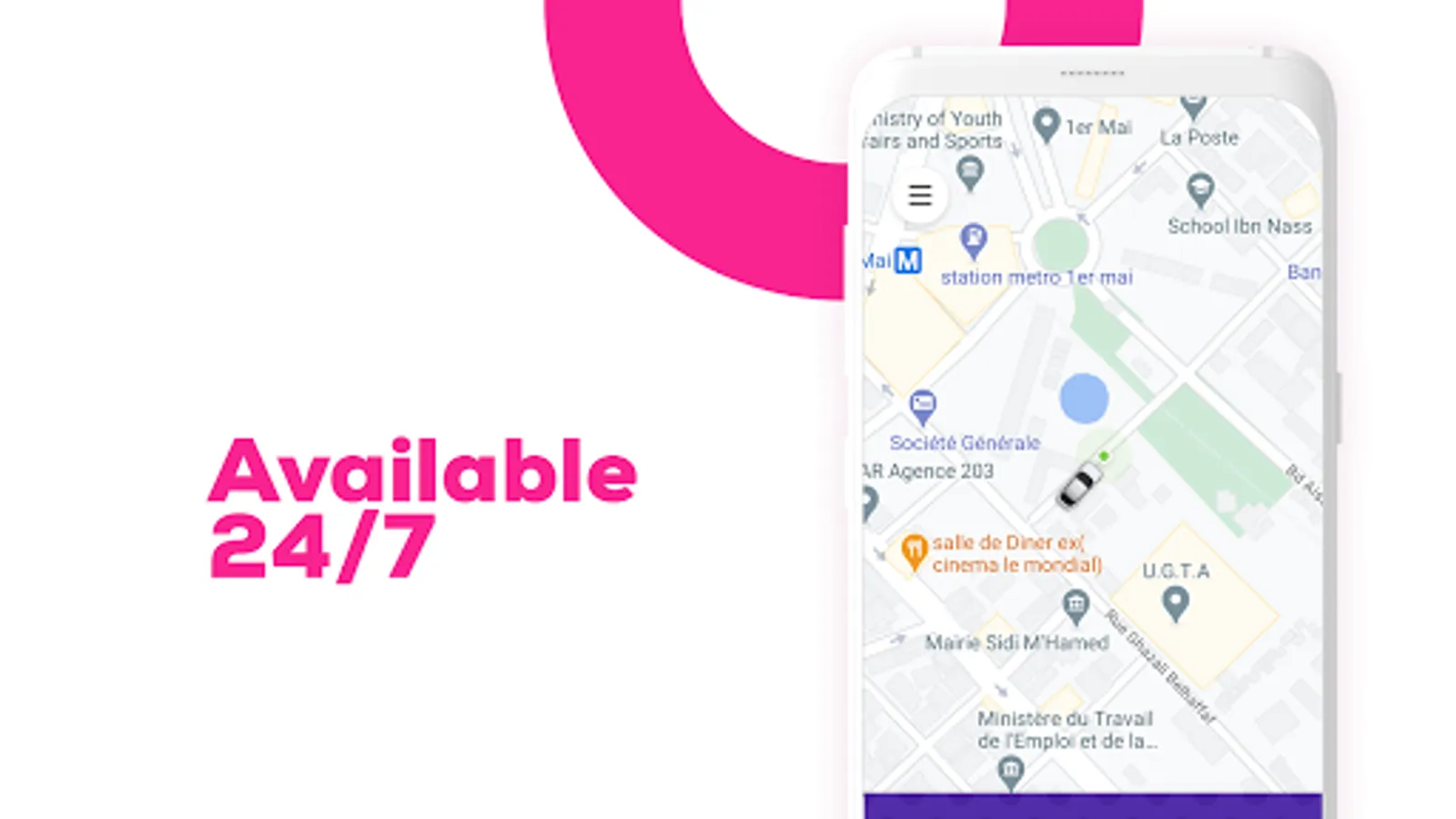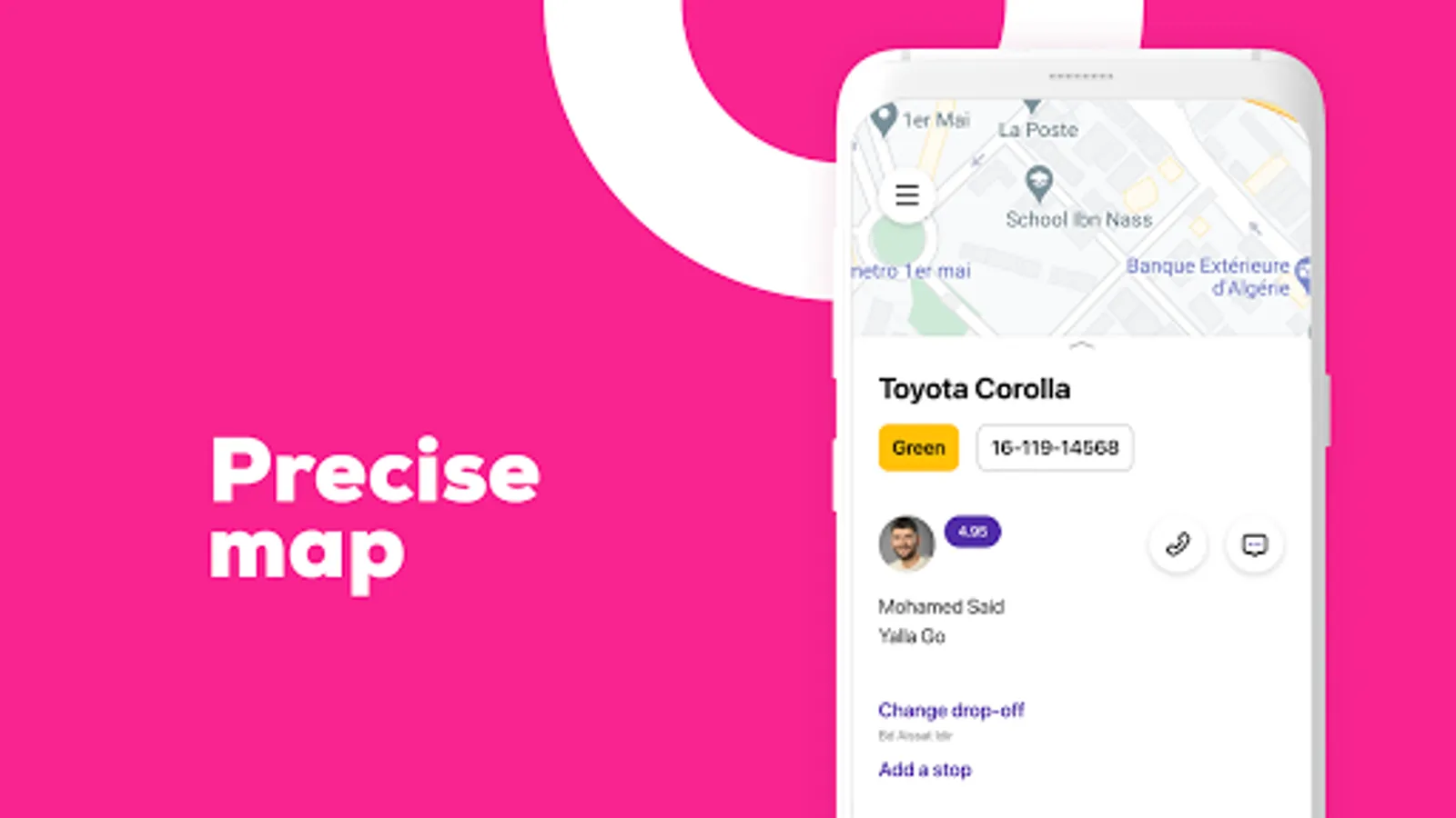 Yallago taxi Algeria uses modern geolocation system. With our booking app your driver won't have problems with finding pick up location.