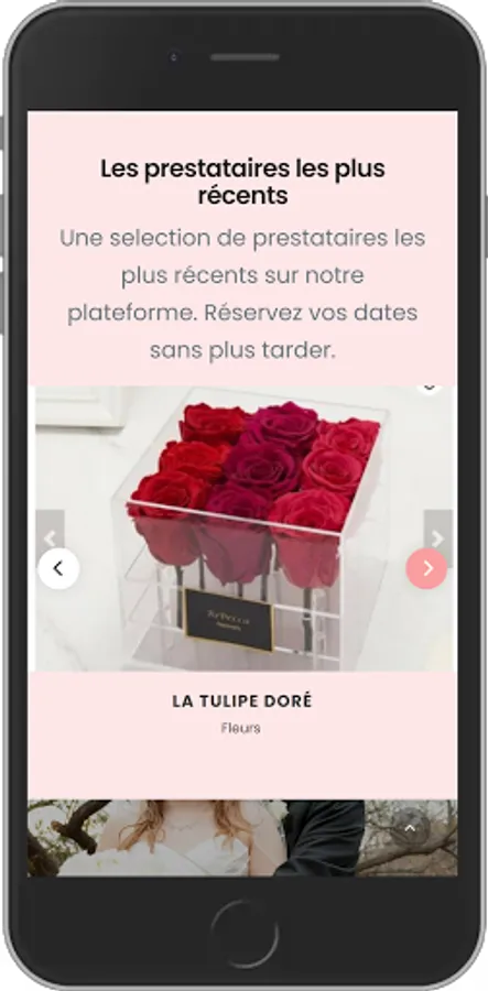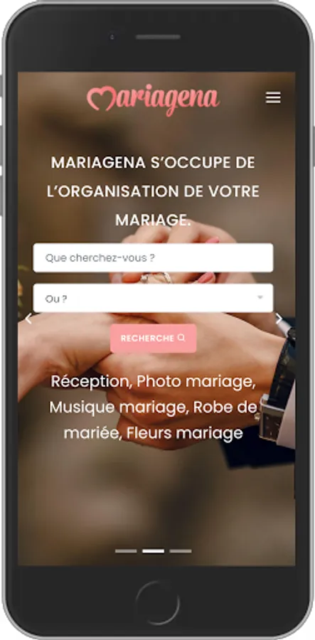 "Mariagena" is the first Algerian wedding organization space that allows you to choose everything according to your budget and this from your living room: your reception room, your photographer, the animation of your wedding ... to your wedding dress .