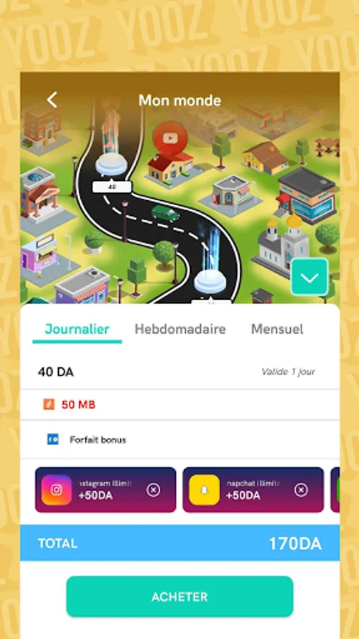YOOZ is an application that allows you to enter a very fun world and gives you the possibility of composing your mobile plans according to your needs in all flexibility! Plus, she's offering you loads of discounts at your favorite stores and restaurants!