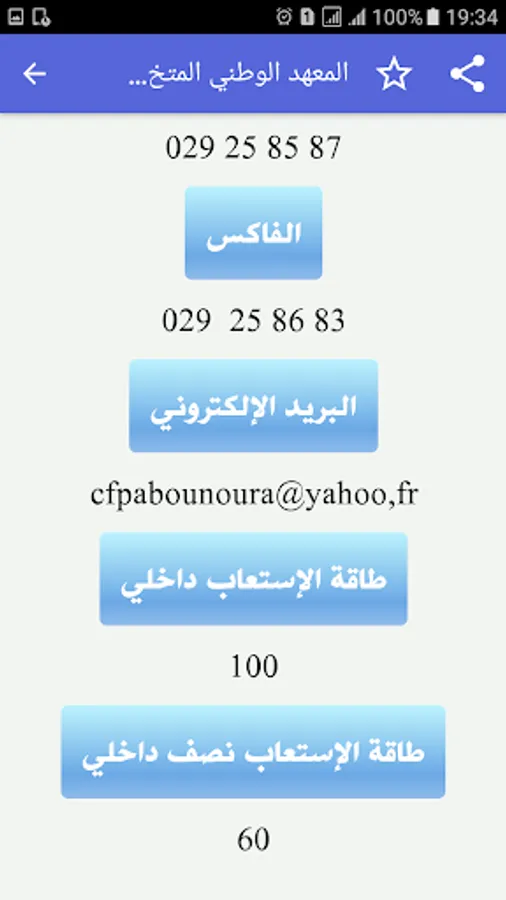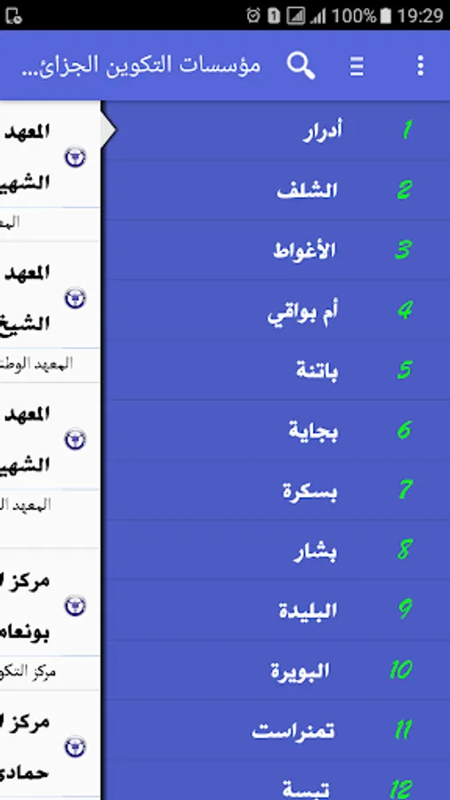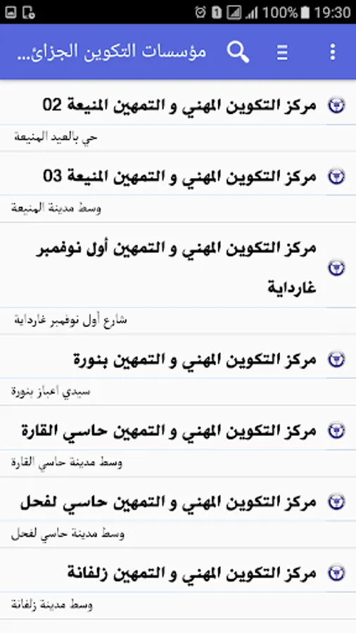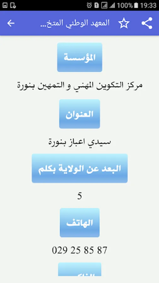 An application that works without the Internet contains information about the training institutions located at the level of Algeria in particular, especially the Ministry of Vocational Training and Education
