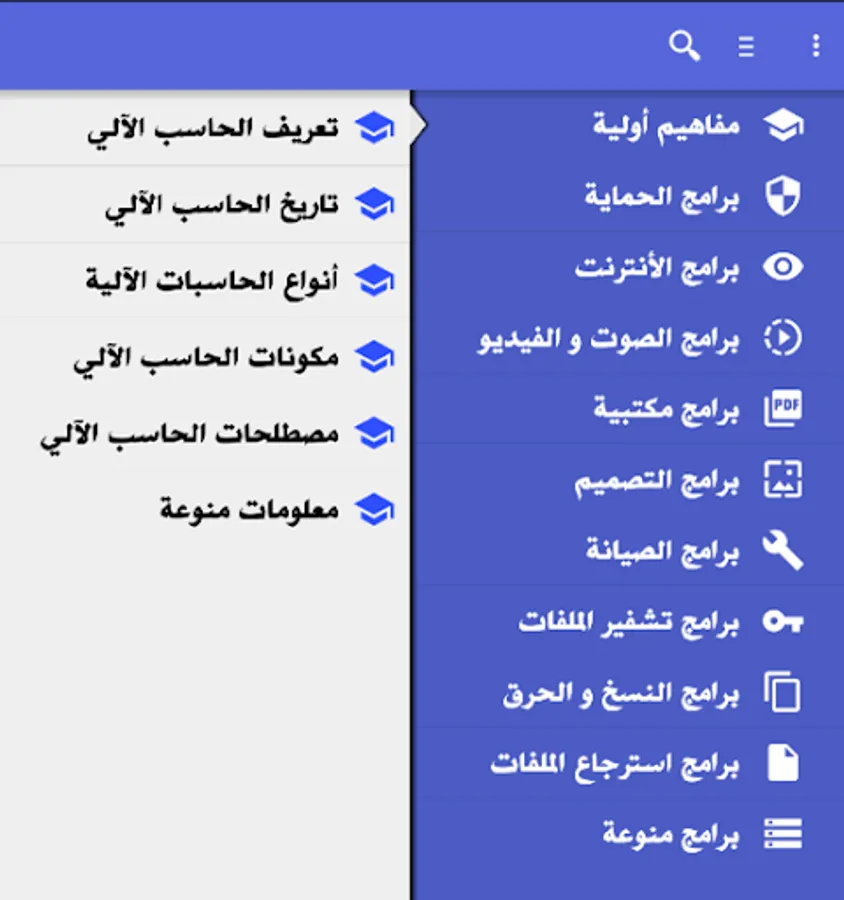 Computer program guide application is an application that works without the internet, as it contains information about more than 100 hundred famous programs working on the computer, in addition to general concepts about the computer with the ability to search within the application and add a list of favorites for reference later.