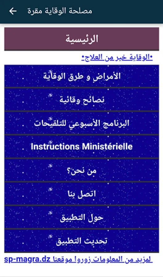The application contains general tips and information about diseases and ways to prevent them:
