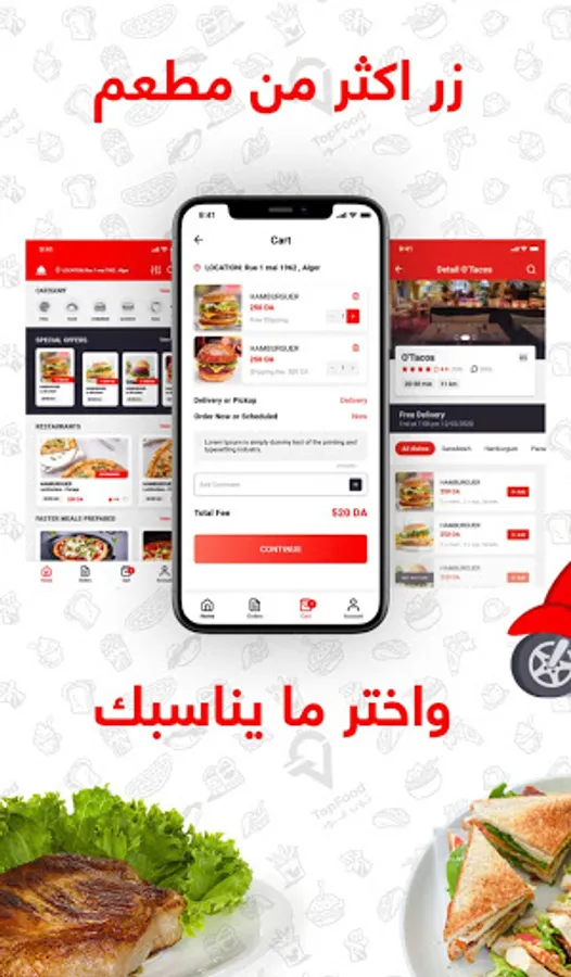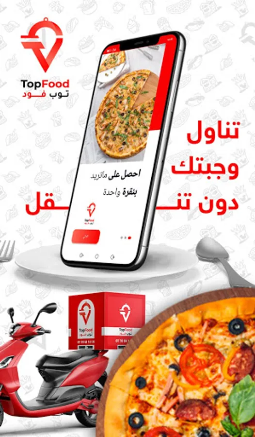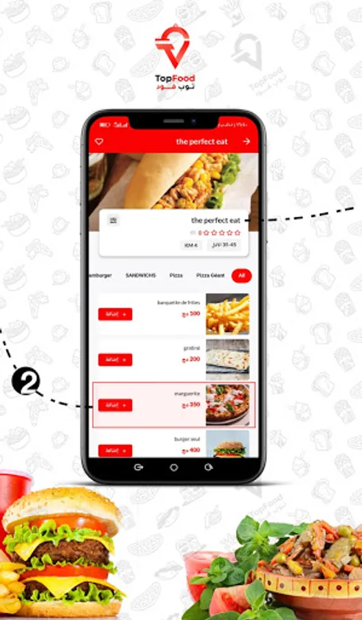 TOPFOOD Company does not provide meal preparation services, but rather facilitates the process of connecting customers with different restaurants, provided that the company guarantees the quality of service. After the customer registers in the application, he can choose his meal carefully, then confirm his request to reach it in a short time through the delivery man.