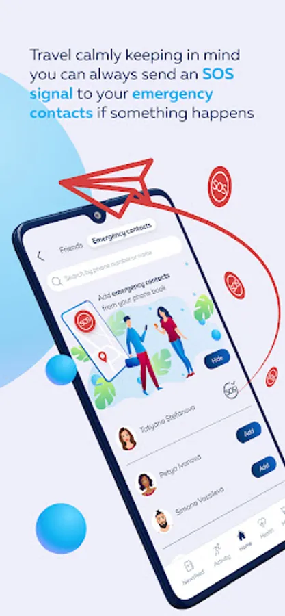 Send an SOS signal with your location and health record to emergency contacts in case of need.