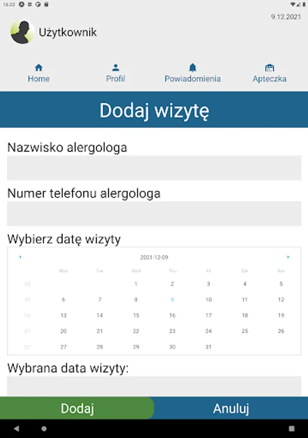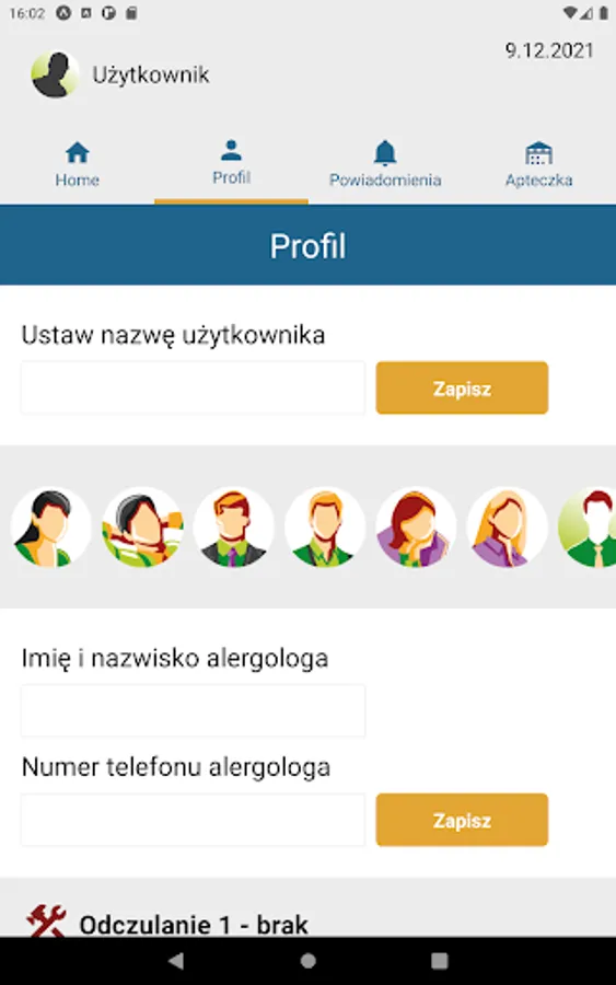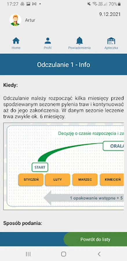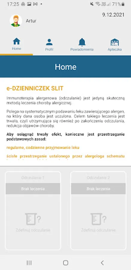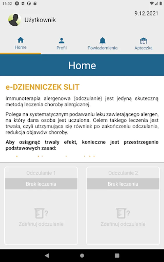 The application is intended for patients using sublingual immunotherapy (SLIT-SubLingual lmmunoTherapy), a therapy commonly known as desensitization. The allergist ordering the patient's sublingual desensitisation (SLIT) decides about access to the application and the possibility of using it.