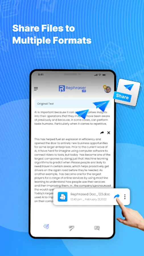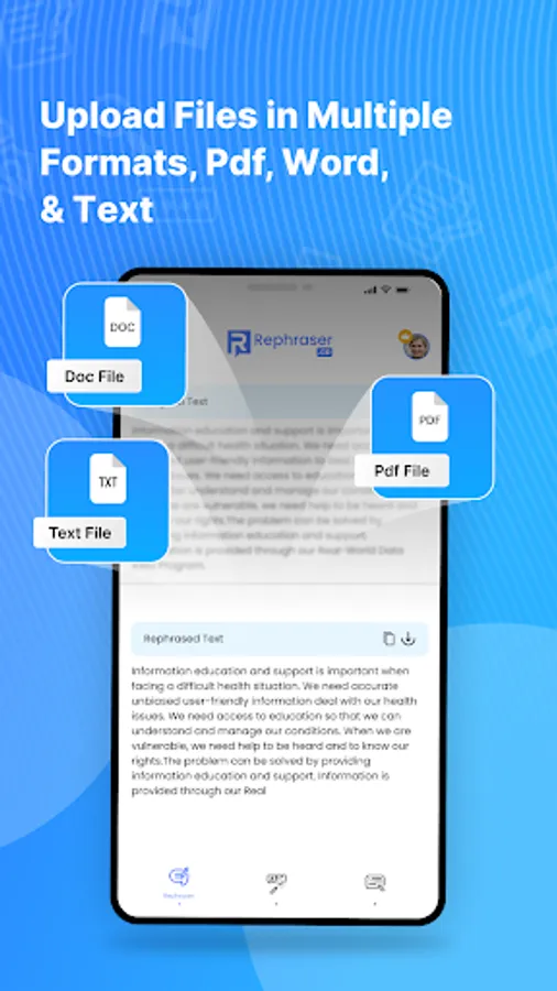The biggest feature of our paraphrase tool app is that it can easily extract text from a PDF file. If you have content saved on a PDF document on your device then you don’t have to manually type it down on the app. Our article rewriter uses OCR technology to get text from PDF files. The text on PDF can be rephrased in a unique way after extraction.