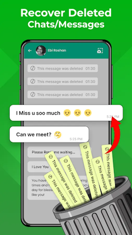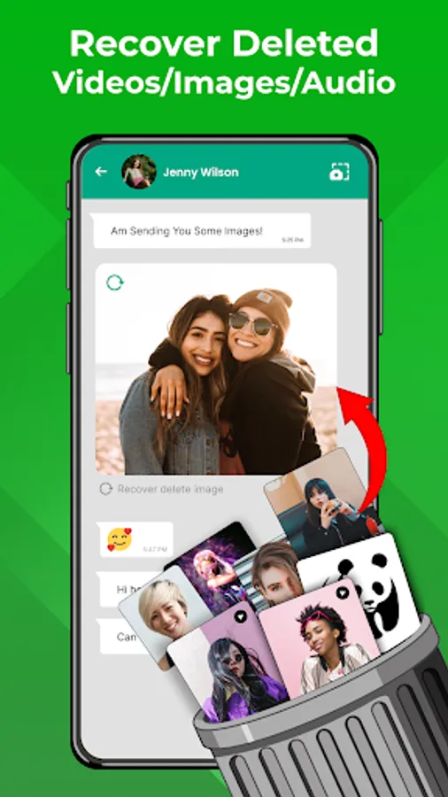•This recover deleted messages app recovers recently deleted messages & media files like images, video, audio, and gifs.