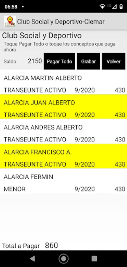 Application that allows you to visit a list of associates or subscribers to collect periodic fees.
