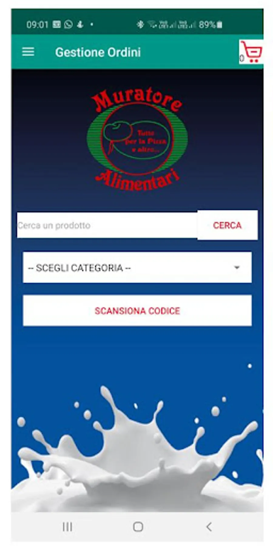 The Muratore Alimentari app is dedicated to both corporate and private customers. It is possible to order products, save favorite products, use the barcode reading to add a product to the order.