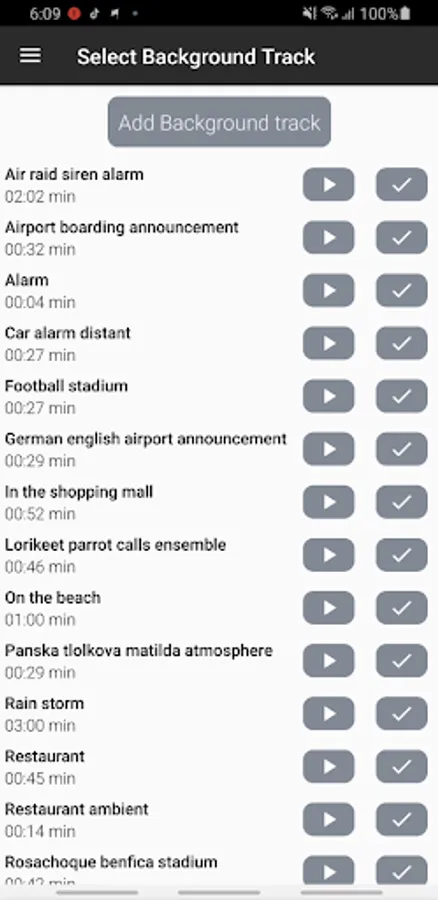 Select your own audio background or use a default audio background provided: