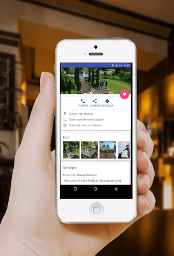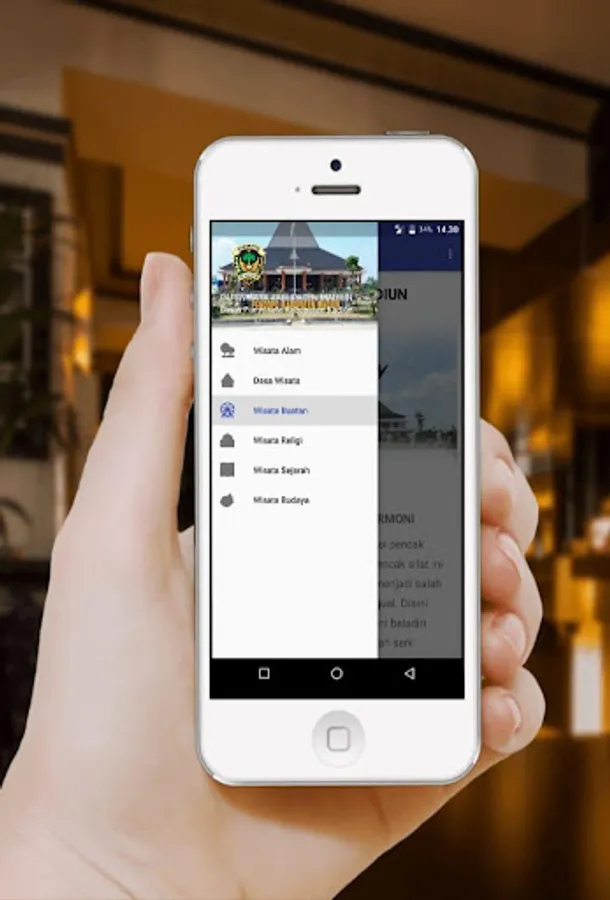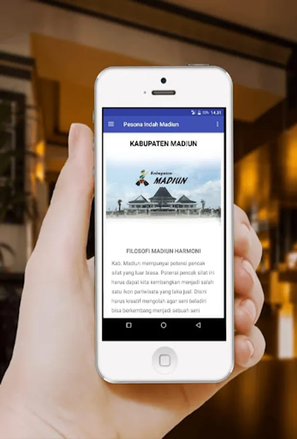 The application "Enchantment Beautiful Madiun" contains information on tourism and culture in the Regency and the city of Madiun.